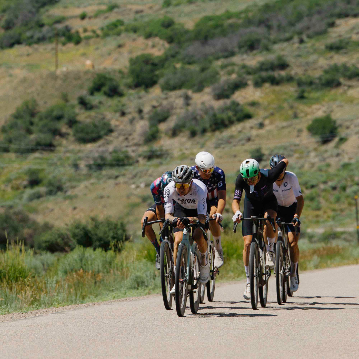 Keegan didn't waste any time once the closed-circuit course started. After an initial attack by Alex Howes, Keegen was the second to break away as the first climb approached, ultimately setting up the break of the day with five other riders.