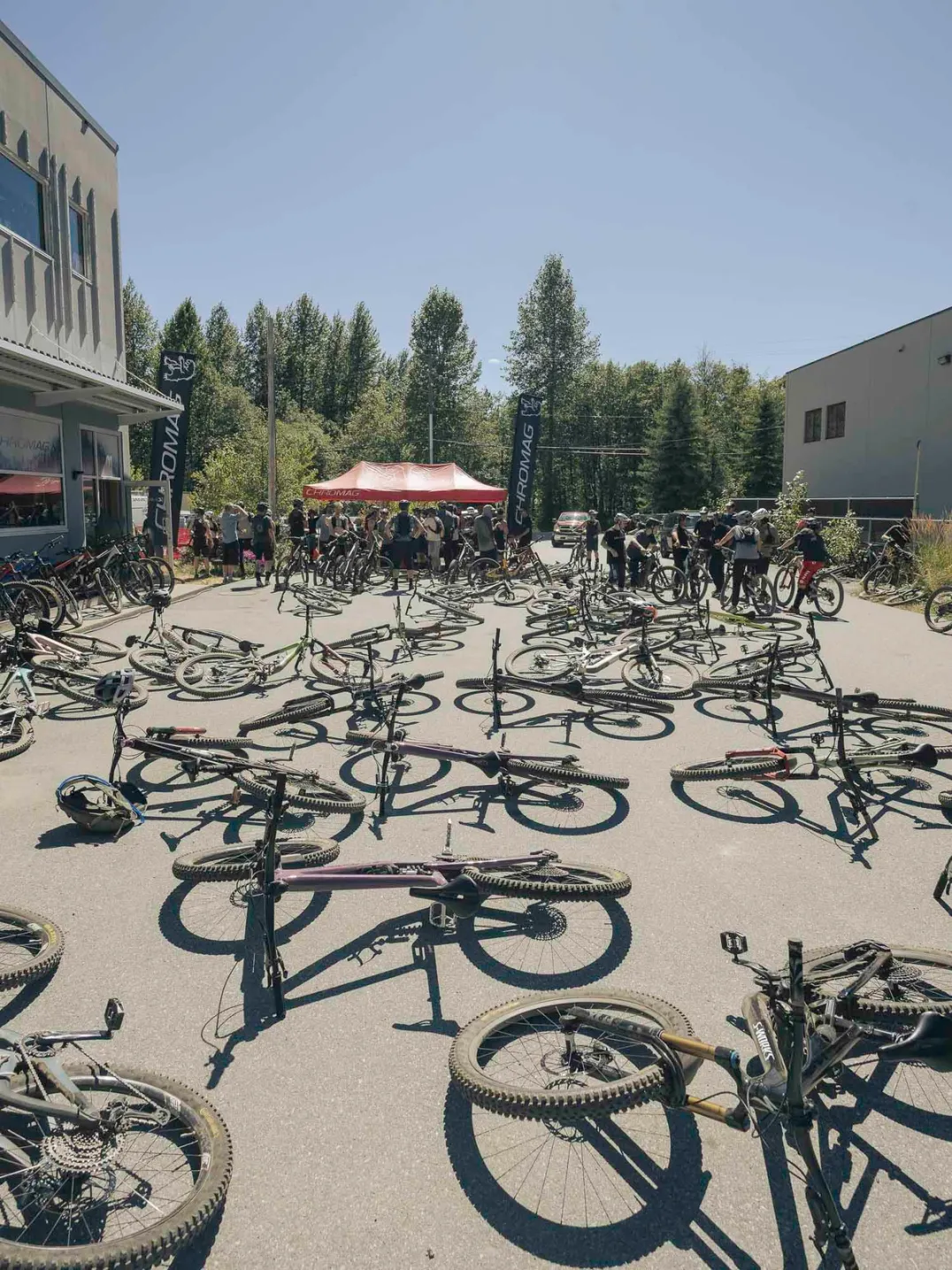 Finding little respite from the heat at the Top of the World, riders descended to Chromag Bikes for a rest stop before the climbing began again. First, it was up the west side of the valley and back to the village, before a repeat of where the ride started — another ascent of Blackcomb.